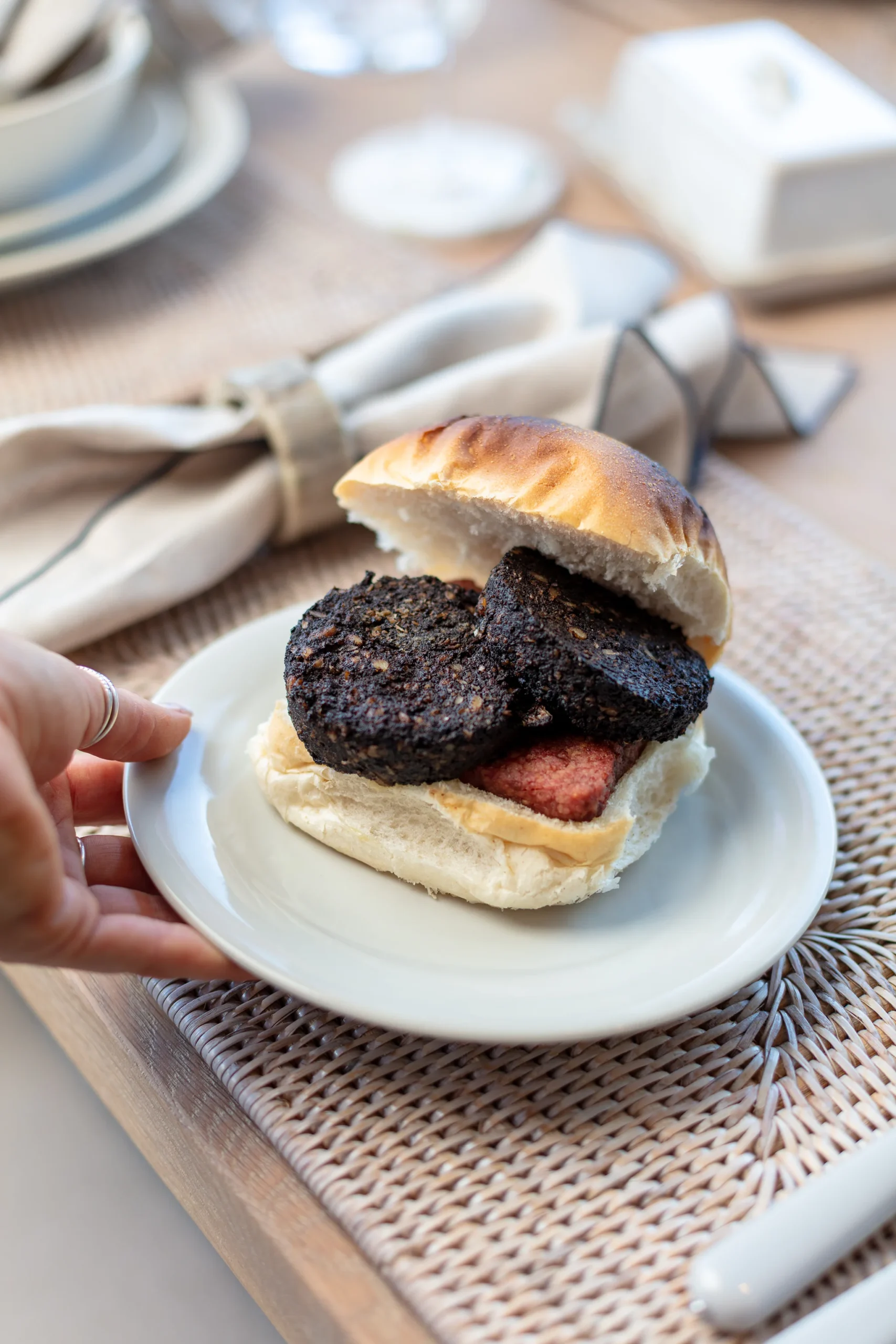 Water, Beef Suet, Black Pudding Mix (Oatmeal, Dried Pigs Blood, Rusk (Wheat flour(Calcium Carbonate, Iron, Niacin, Thiamine), Salt, Raising Agents, (E503ii)), Spices, Salt), Onion, Pearl Barley, Pimento, Black Pepper, Salt.