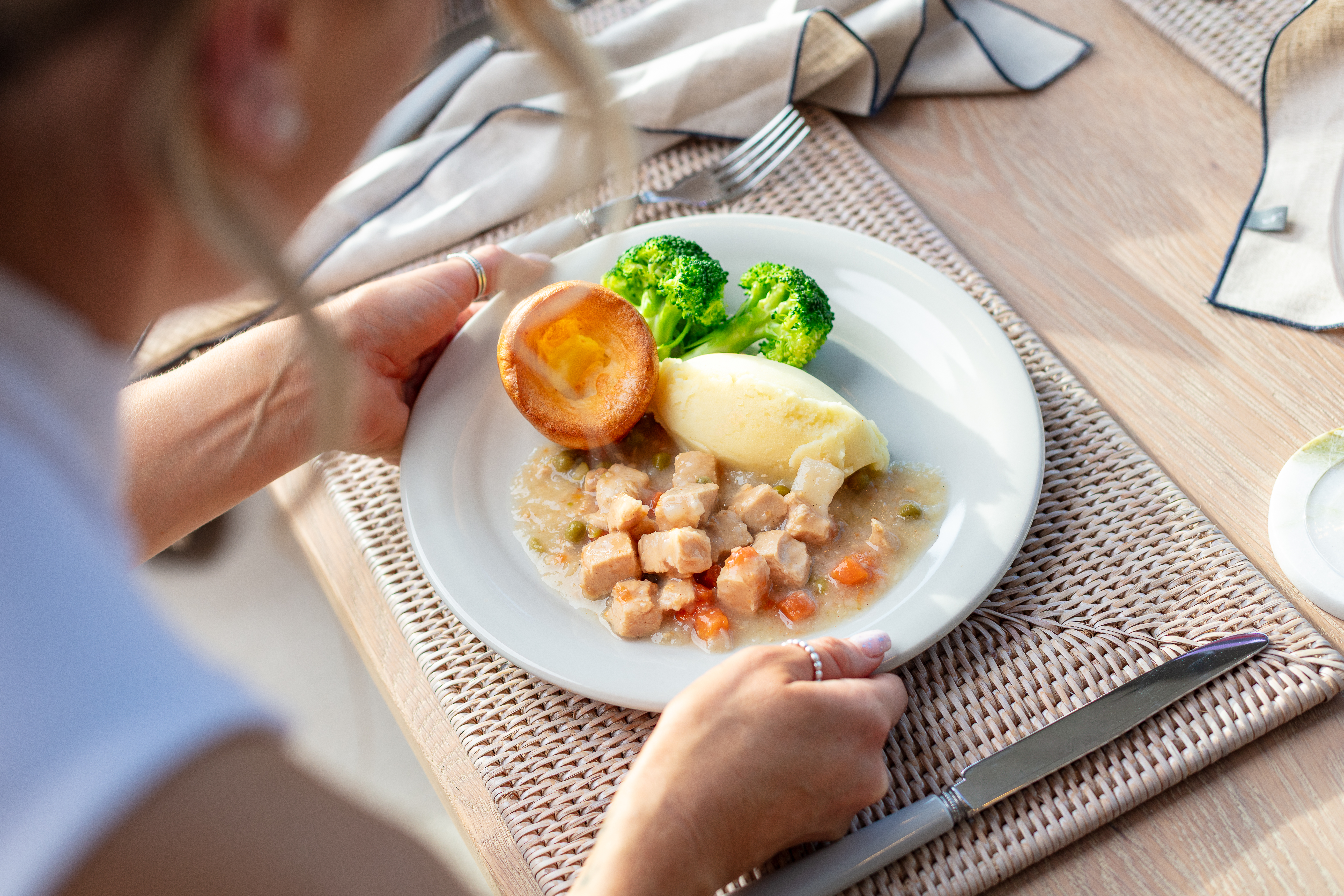 Water, Chicken (30%), Vegetables (19%), [Potatoes, Carrots, Peas], Fortified Wheat Flour [Wheat Flour, Calcium Carbonate, Niacin, Iron, Folic Acid, Thiamin, Modified Maize Starch, Salt, White Pepper.