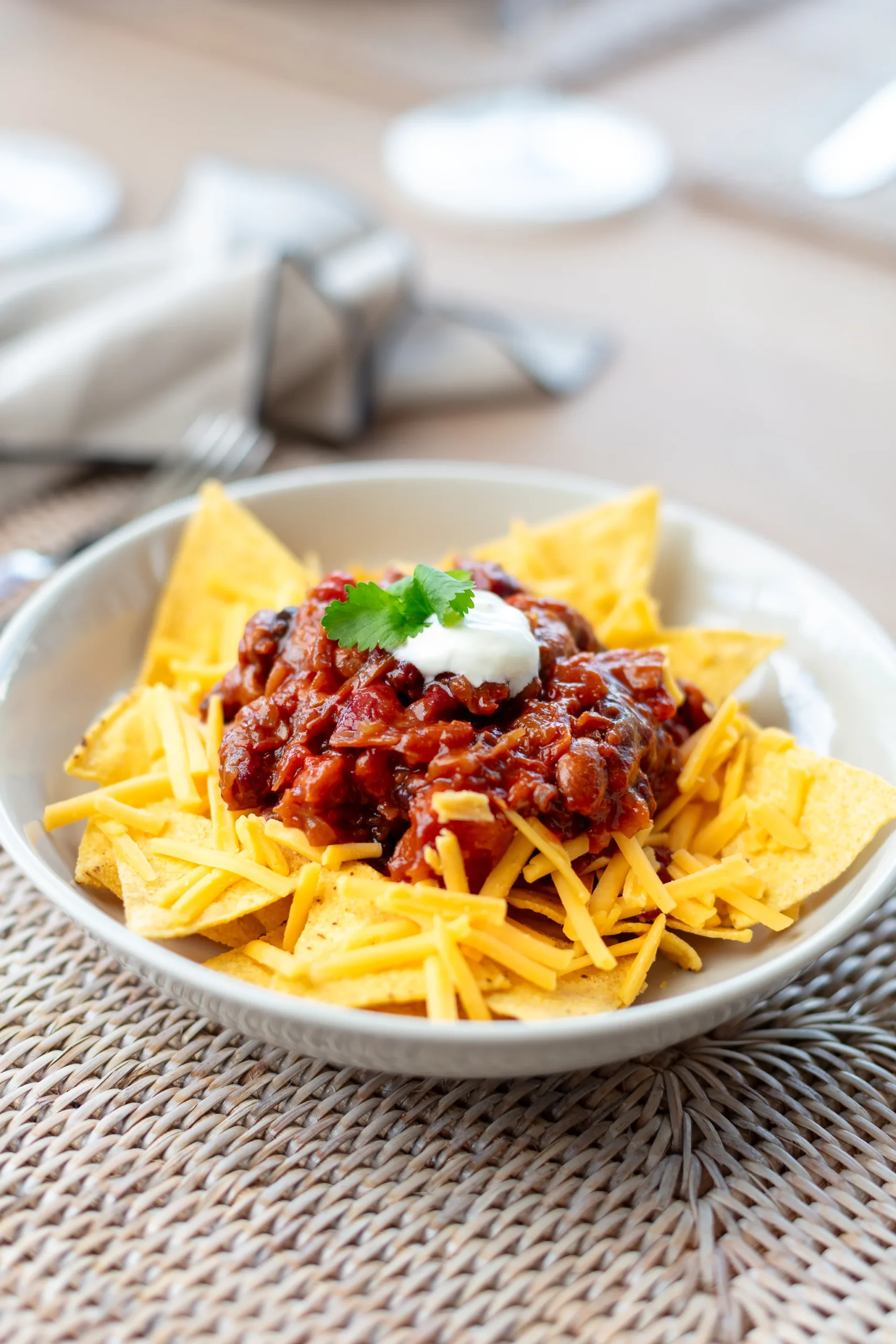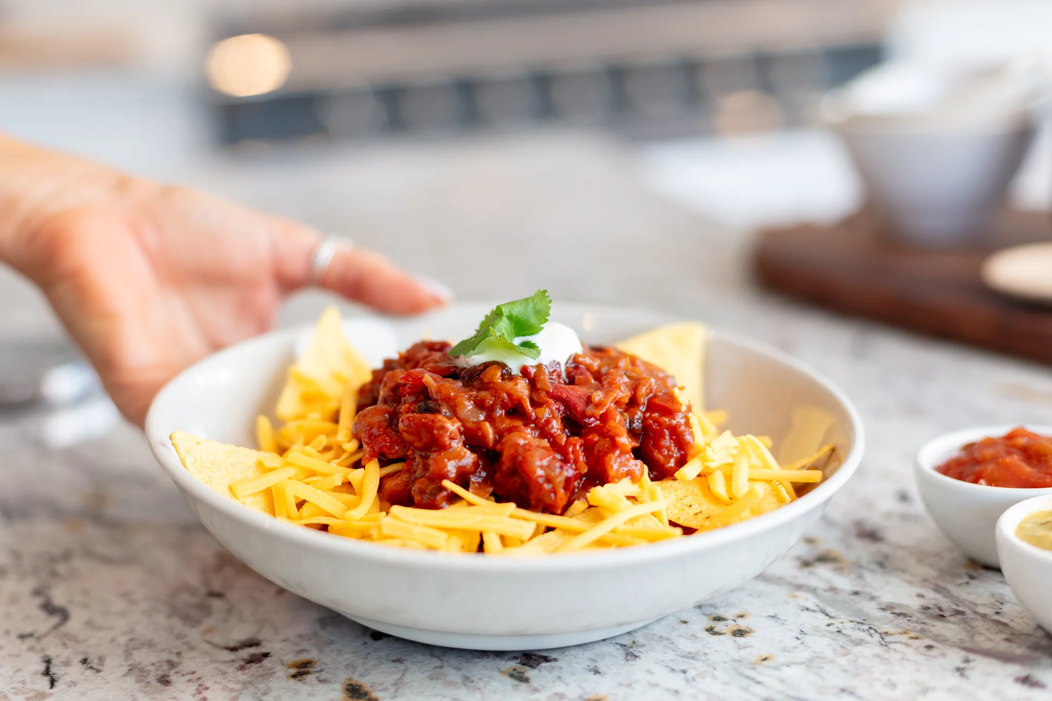 Water, Beef (20%), Chopped Tomatoes, Tomato Puree, Kidney Beans (7.5%), Pinto Beans (7.5%), Mixed Peppers, Onion, Rapeseed Oil, Modified Maize Starch, Malt Vinegar, Salt, Garlic Powder, Cumin, Cayenne Pepper, Paprika, Chilli Powder, Malt Extract, Paprika Extract, Fortified Wheat Flour [Wheat Flour, Calcium Carbonate, Iron, Niacin (B3), Thiamin (B1)].